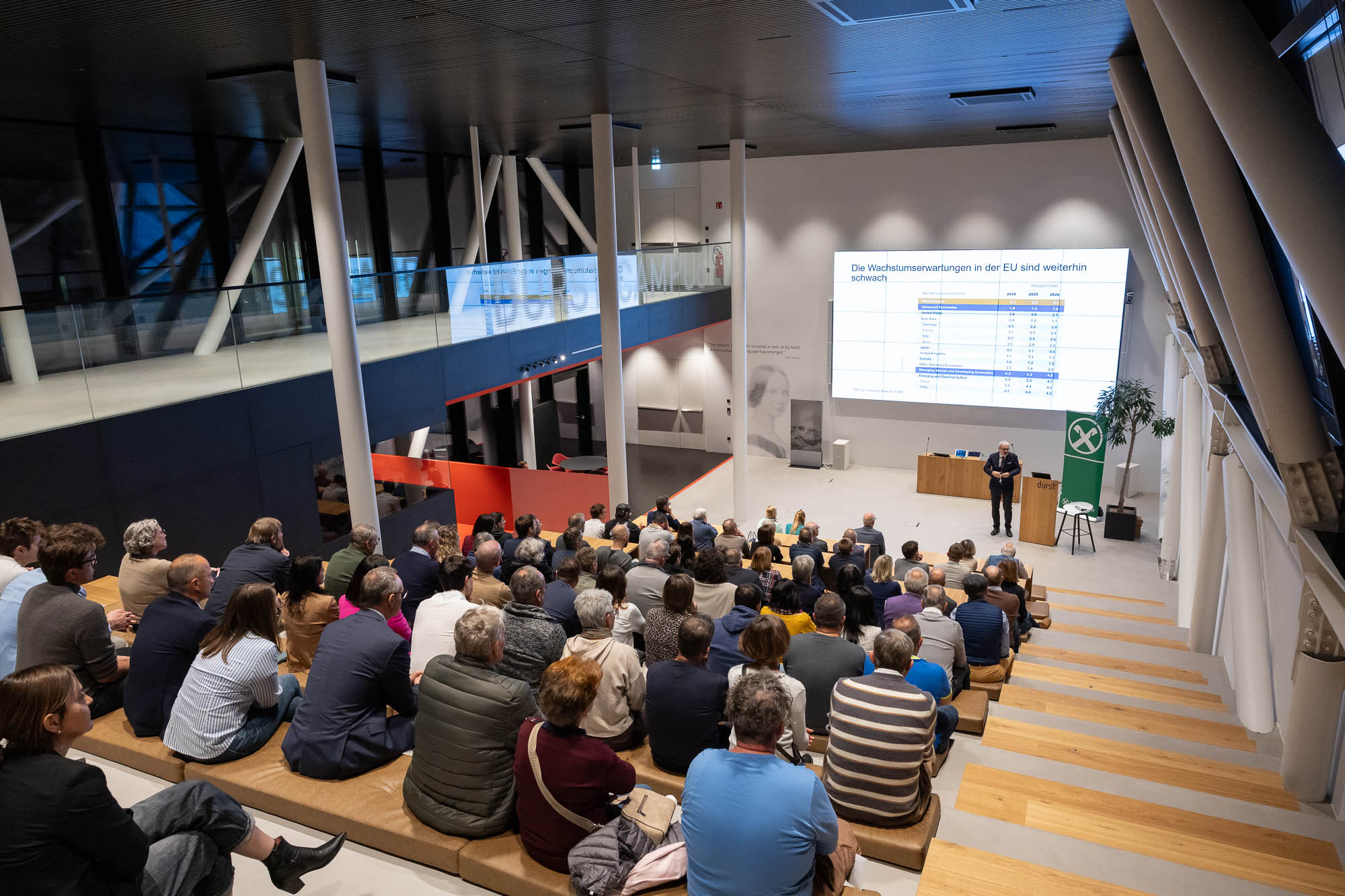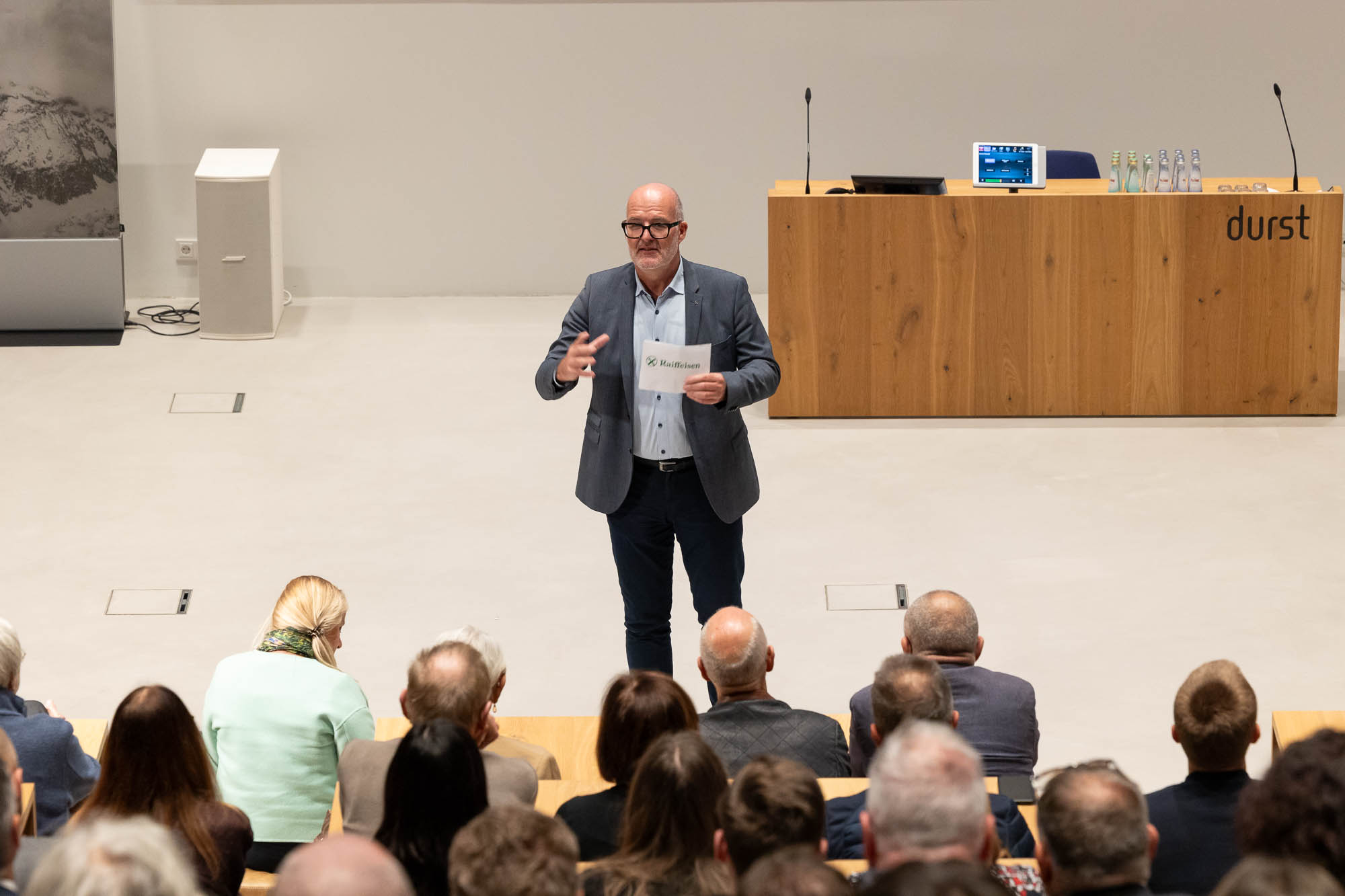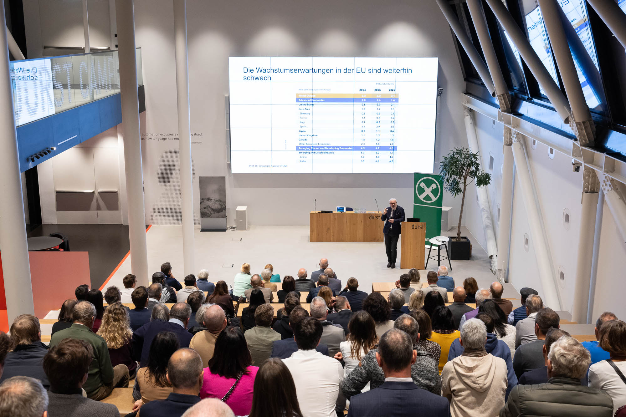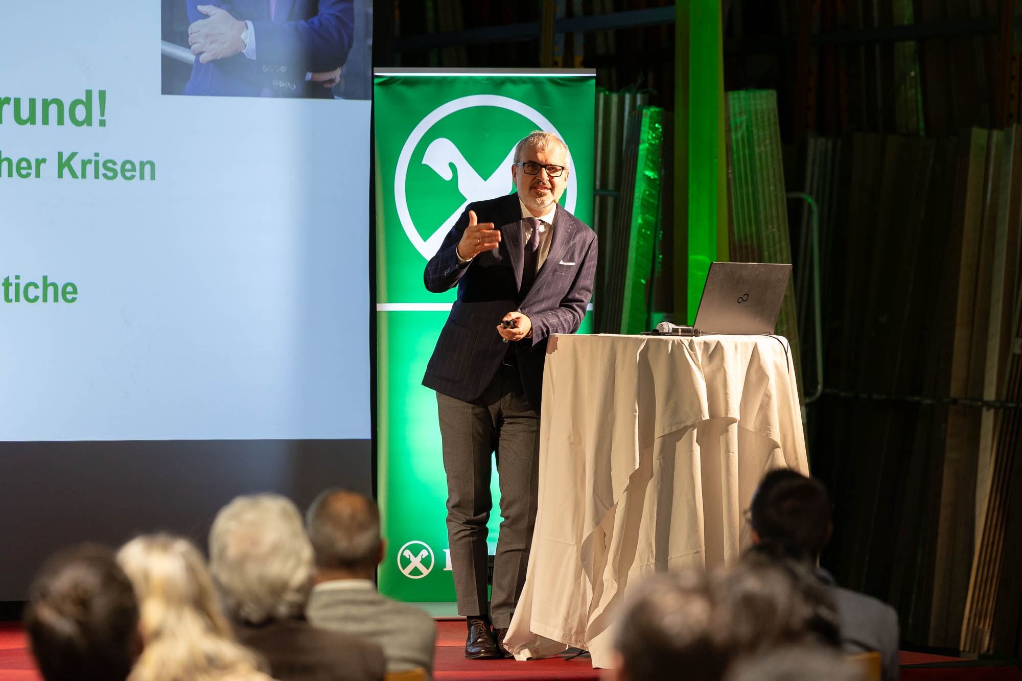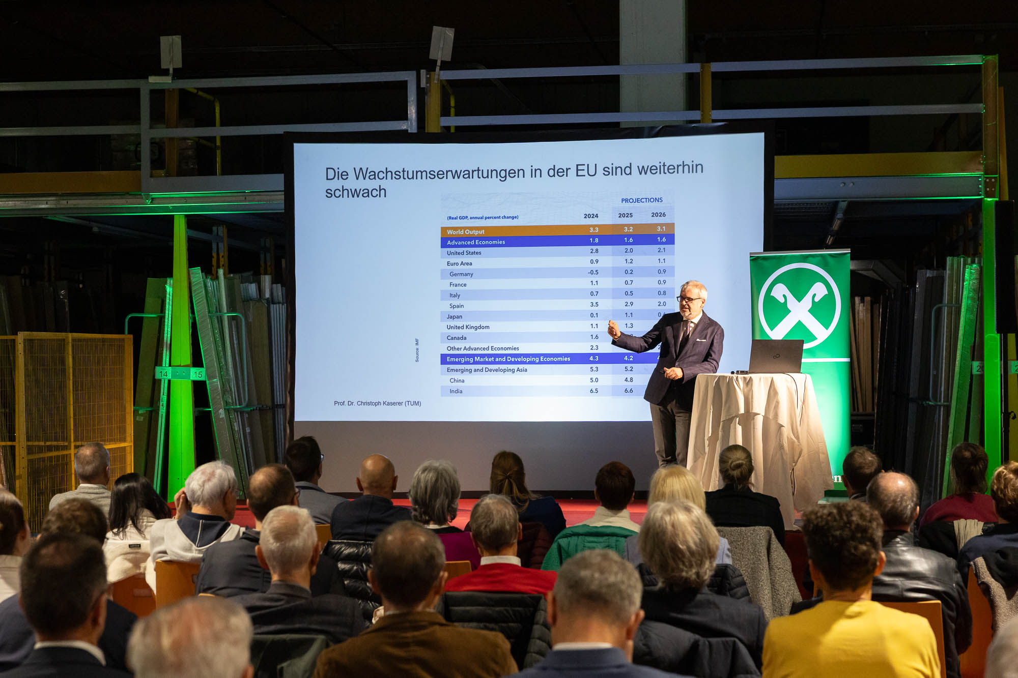 Bei den diesjährigen Herbstveranstaltungen des Raiffeisen InvestmentClubs referierte Christoph Kaserer, Co-Direktor des Center for Entrepreneurial and Financial Studies (CEFS) und ordentlicher Professor für Finanzmanagement und Kapitalmärkte an der Technischen Universität München (TUM), über die aktuelle Situation an den Aktienmärkten. An den drei Veranstaltungsorten – Firma Pedross in Latsch, Firma Gruber Logistics in Auer und Firma Durst in Brixen – erhielten die Teilnehmenden zudem Einblick in die jeweiligen Unternehmen.