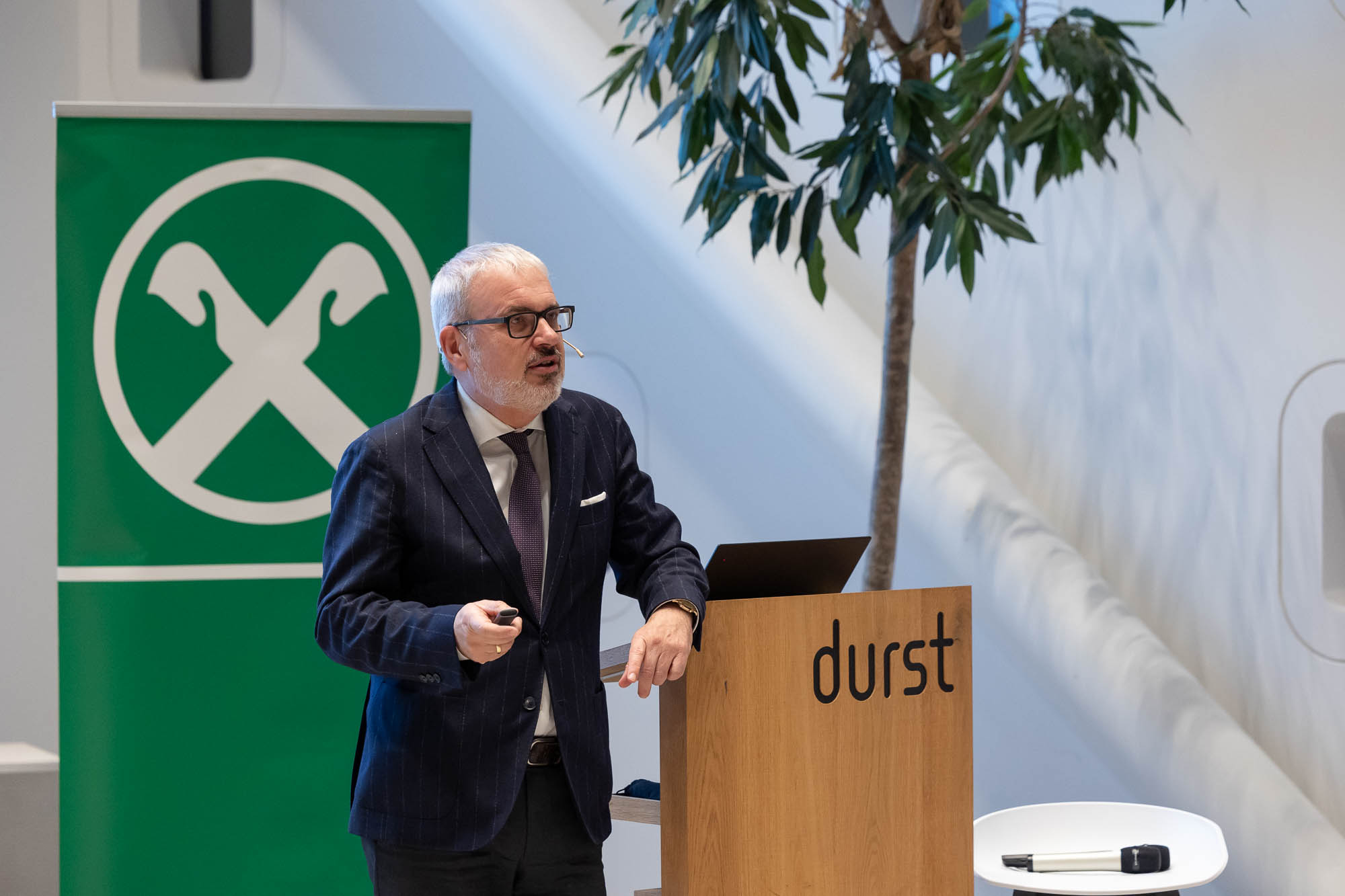 In Brixen bot die Firma Durst den Mitgliedern des Raiffeisen InvestmentClubs schließlich einen Einblick in industrielle Digitaldruckprozesse in den Bereichen Großformat-, Etiketten-, Textil-, Keramik- und Verpackungsdruck. „Für uns ist es keineswegs selbstverständlich, während des laufenden Betriebs externe Veranstaltungen auszurichten. Umso mehr freuen wir uns, den Raiffeisen InvestmentClub mit diesem spannenden Thema bei uns willkommen zu heißen“, so Fabian Sottsas, Chief of Staff bei Durst Group AG.